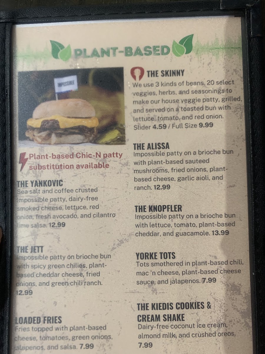 Beef patty or chicken breast flame-broiled with A1 butter sauce. Served on a brioche bun with garlic aioli, bourbon onions, bacon, cheddar crisp (IYKYK), and roasted green chiles.